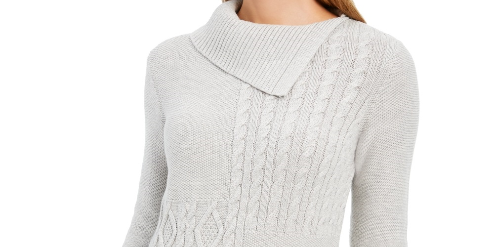Ask a question about Suéter feminino Charter Club com gola redonda e tricô, tamanho pequeno, médio, cinza