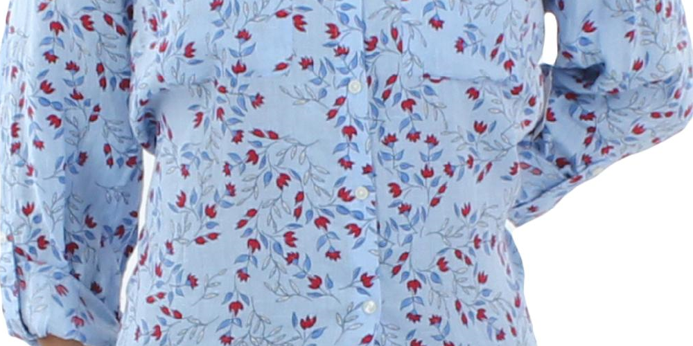 Ask a question about Camisa feminina de linho floral com botões Charter Club, azul, tamanho grande