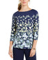 Charter Club Blusa feminina com estampa floral e decote canoa, azul, tamanho extragrande