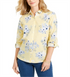 Camisa feminina Charter Club com estampa floral e mistura de linho, amarela, tamanho pequeno