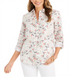 Camisa feminina Charter Club com estampa floral e mangas curtas, em mistura de linho, branca, tamanho médio