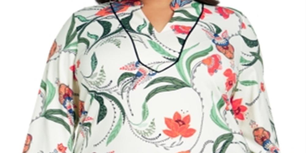 Túnica feminina com estampa floral Charter Club, branca, tamanho -0X
