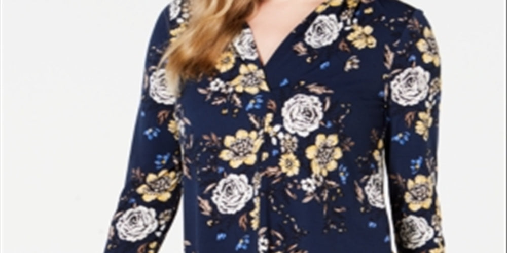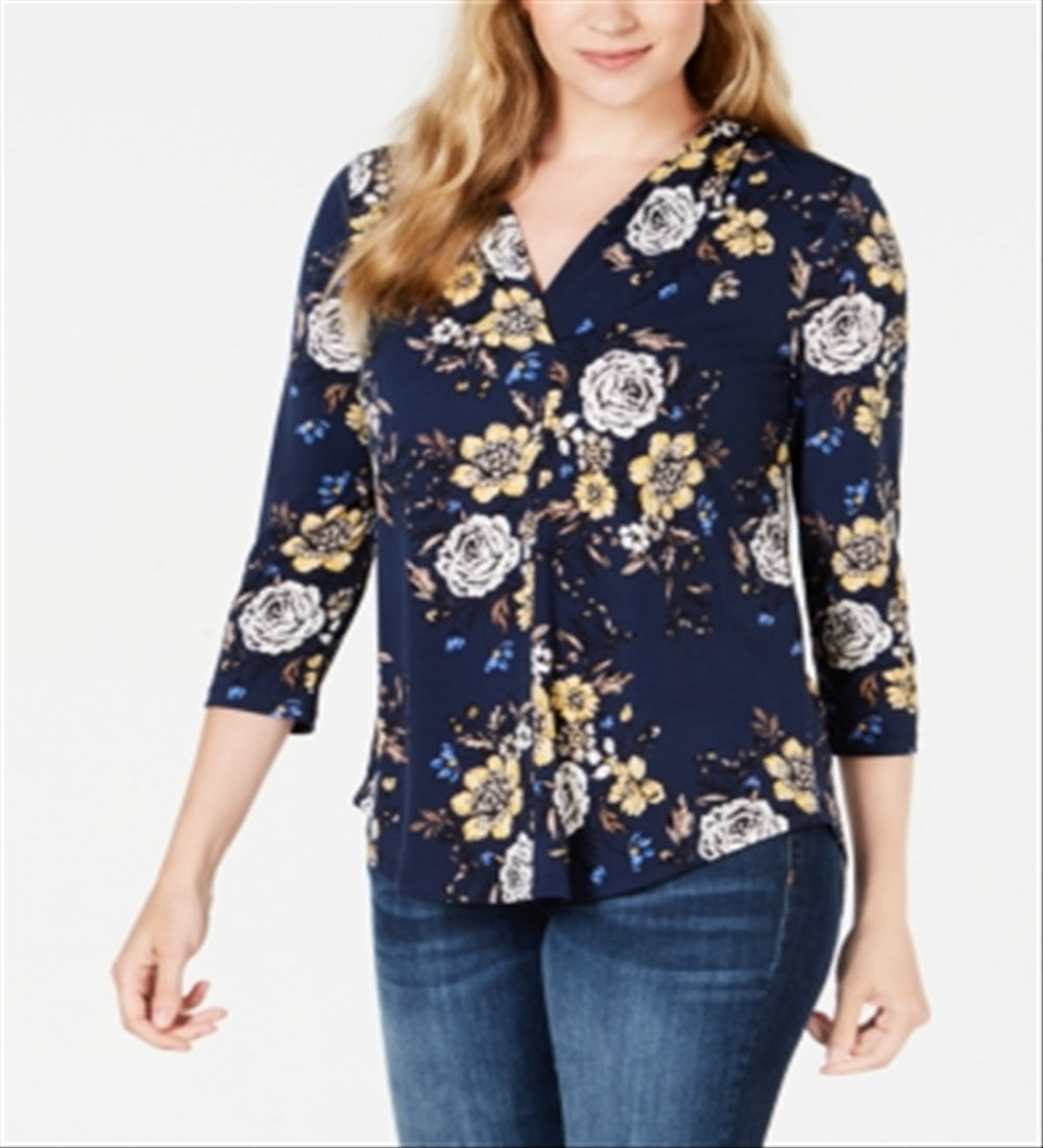 nós temos uma queda por estampas florais e este top com decote em V do Charter Club realça lindas flores perfeitamente