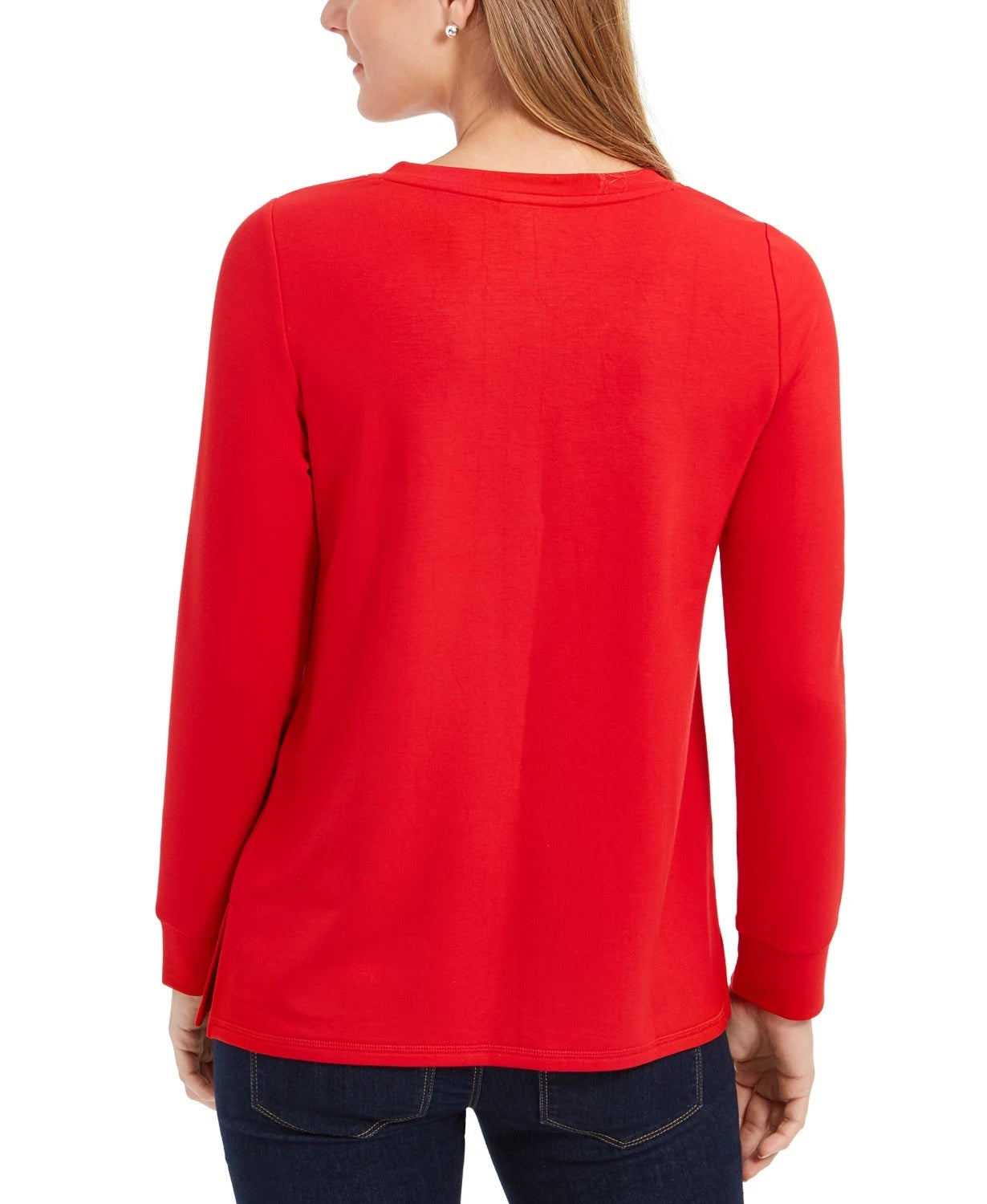 Túnica feminina Charter Club French Terry com decote em V, vermelha, tamanho médio