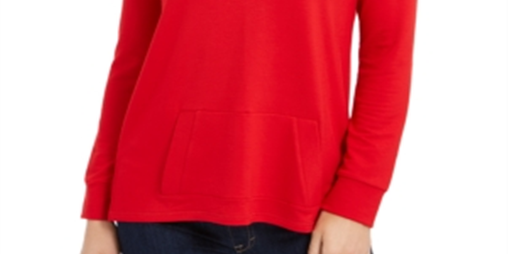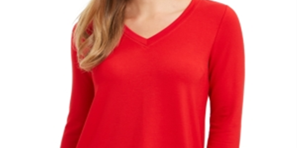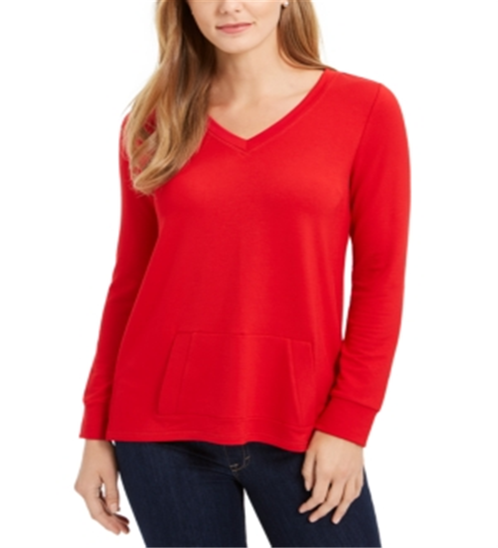 Túnica feminina Charter Club French Terry com decote em V, vermelha, tamanho X-S