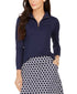 Camiseta feminina Charter Club com zíper e manga curta, azul, tamanho extragrande