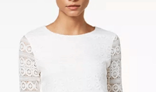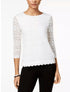 Top feminino de renda Charter Club com manga 3/4, branco, tamanho pequeno e pequeno