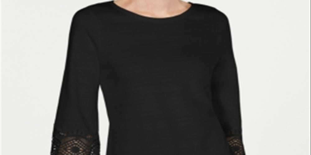 Algodão | Ajuste no quadril | Projetado para se ajustar e valorizar pessoas de 1,62 m ou menos | Gola redonda | Mangas 3/4 com acabamento em renda |