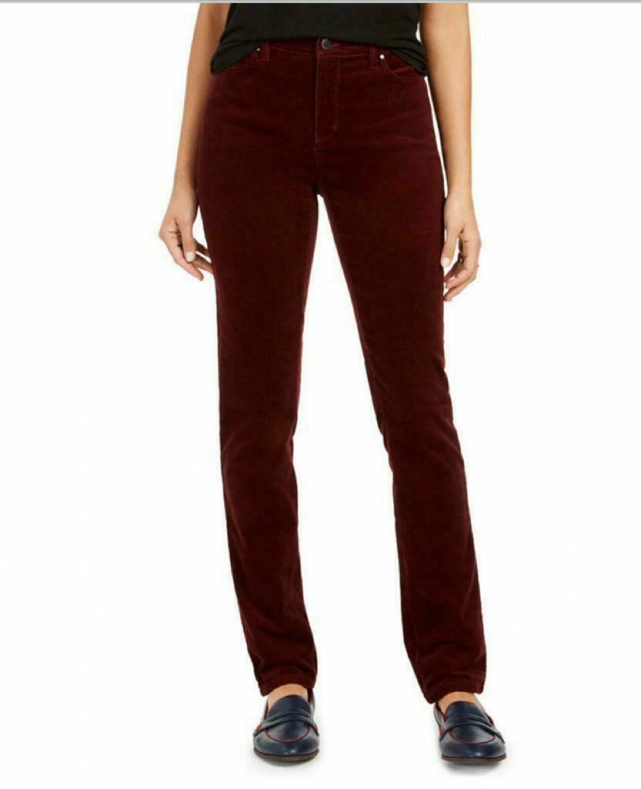 Calças de controle de barriga de veludo cotelê Lexington feminino Charter Club, vinho, tamanho 4