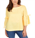As mangas sino delicadas e os laços no cotovelo criam um estilo charmoso para o top de linho da Charter Club | confeccionado com um decote canoa suave. | Caimento relaxado; fica no quadril | Devido ao tamanho generoso | sugerimos um tamanho menor para um ajuste perfeito | Decote canoa