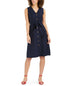 Vestido feminino Charter Club com botões frontais em mistura de linho, azul, tamanho 4