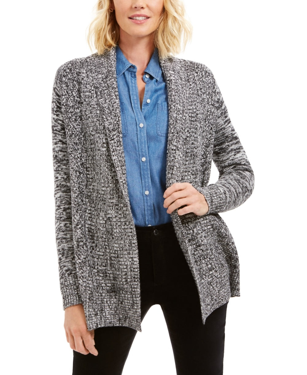 Cardigan feminino com gola xale mesclada Charter Club, preto, tamanho médio
