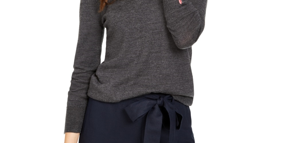Suéter feminino Charter Club de lã merino com punhos abotoados e gola redonda, cinza, tamanho XXG