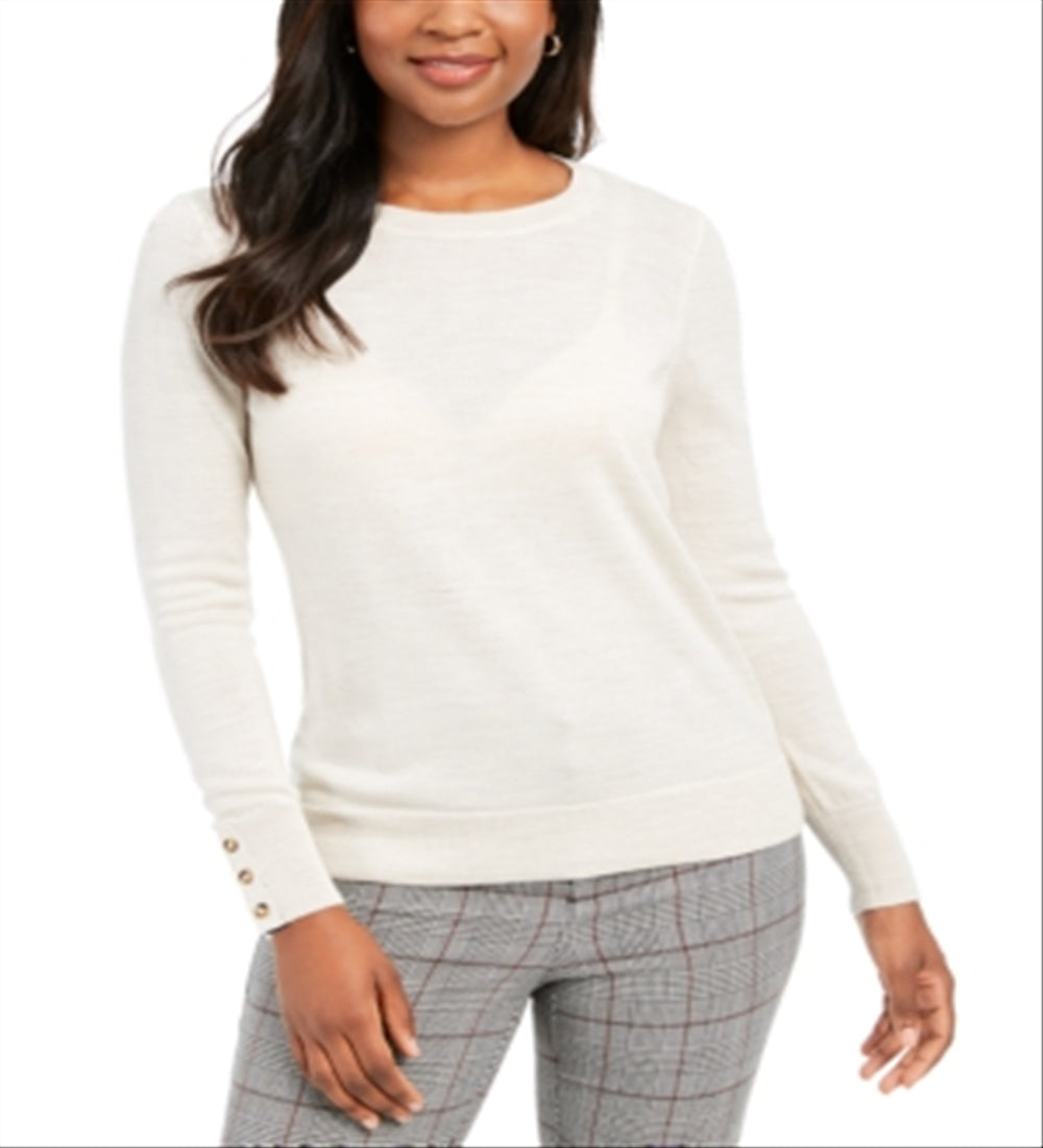 Macio e elegante, com gola redonda clássica e malha sólida | O suéter aconchegante de lã merino da Charter Club tem acabamento com botões elegantes nos punhos. | Comprimento aproximado: 25 | Devido ao tamanho generoso | sugerimos um tamanho menor para um ajuste perfeito | Gola redonda | Botões nos punhos