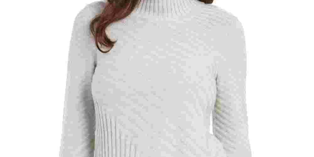 Ask a question about Suéter feminino Charter Club com gola alta e costura mista, cinza, tamanho médio