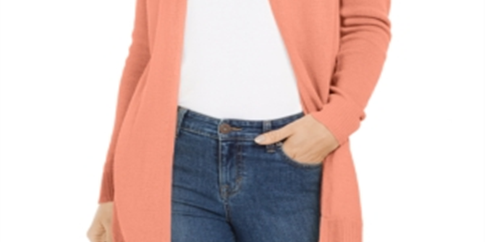 Suéter feminino Charter Club com frente aberta e bainha curva, laranja, tamanho pequeno M