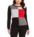 Suéter feminino patchwork Charter Club preto tamanho pequeno GG