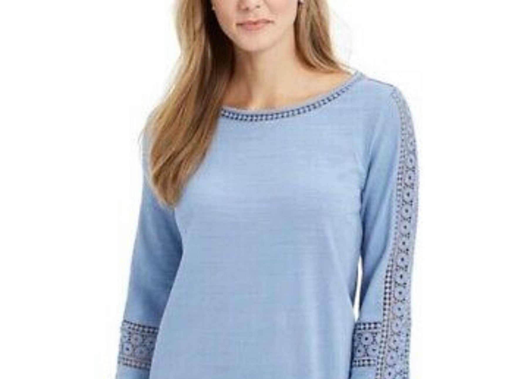 Charter Club Top feminino de crochê pequeno, azul, tamanho médio