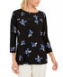 Charter Club Top Feminino Petite Floral Pintucked Preto Tamanho Médio