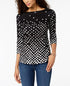 Charter Club Petite Pima Cotton Women's Top com estampa de botões e ombros, preto, tamanho médio