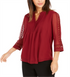 Charter Club feminino, blusa curta com manga transparente e pregas, vermelho, tamanho pequeno G