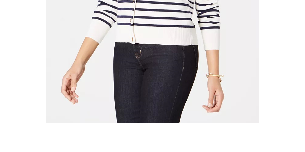 Cardigan feminino listrado pequeno Charter Club com fecho de alavanca, branco, tamanho pequeno G