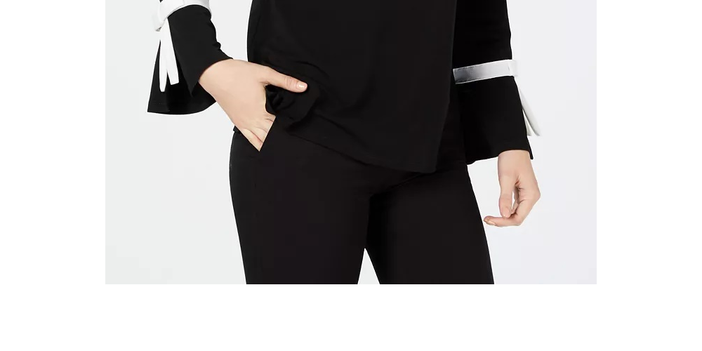 Charter Club Top feminino de crepe com detalhe de gravata, preto, tamanho médio