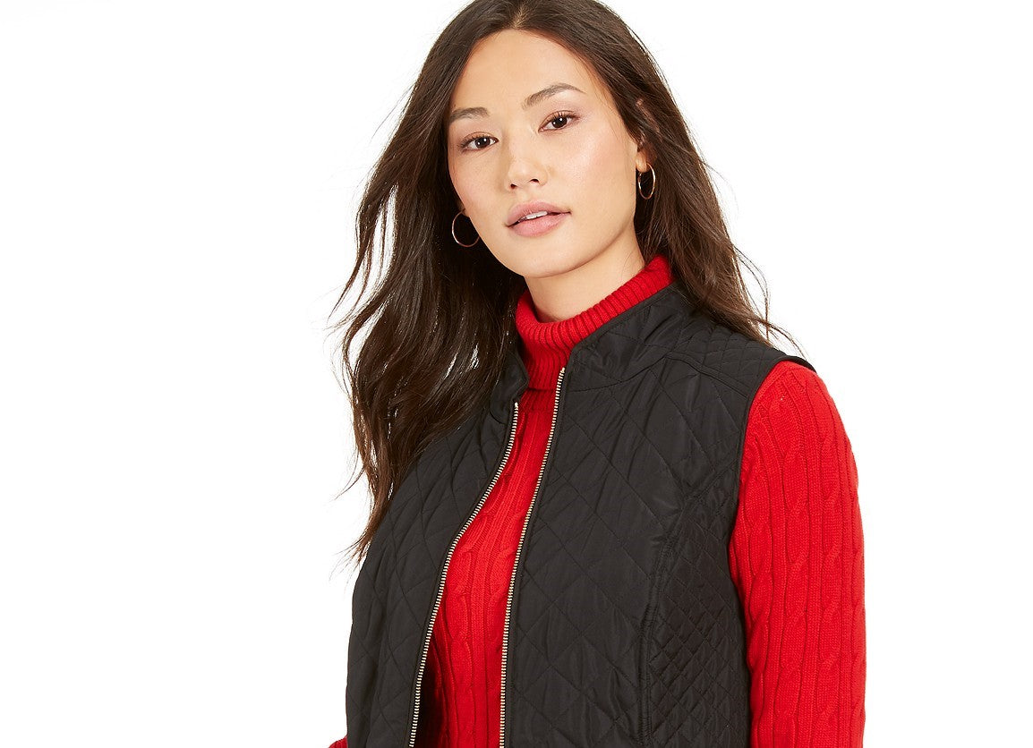 Colete feminino Charter Club Petite de algodão acolchoado com zíper frontal, tamanho pequeno, preto