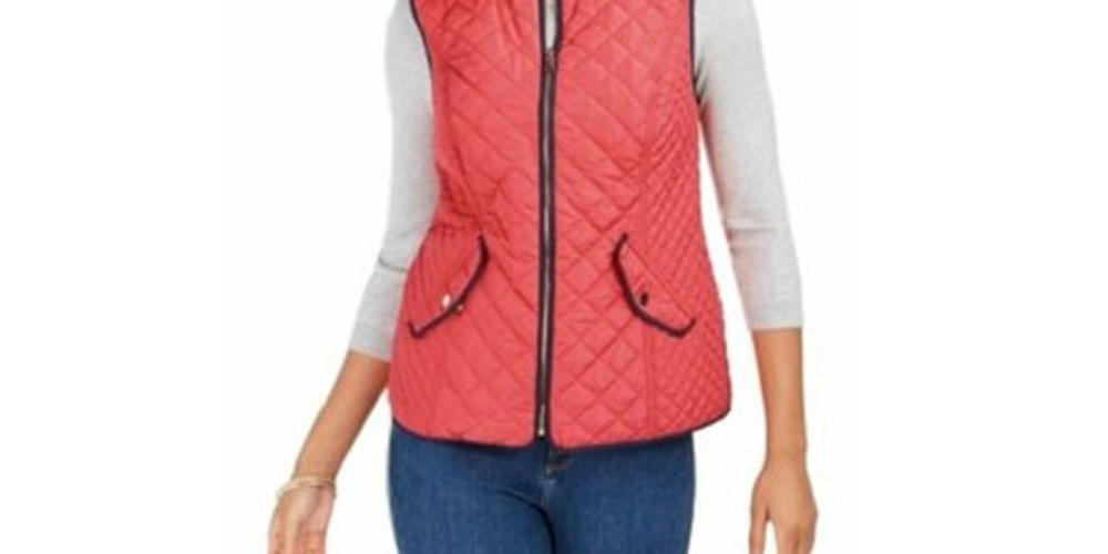 Colete feminino Charter Club Petite de algodão acolchoado com zíper frontal, vermelho, tamanho médio