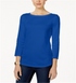 Charter Club Top feminino de algodão Pima com decote canoa e botões, azul, tamanho 2XL