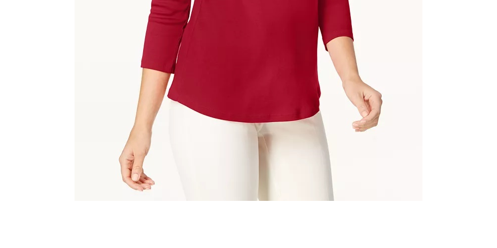 Ask a question about Charter Club Top feminino de algodão Pima com decote canoa e botões, vermelho, tamanho X-S
