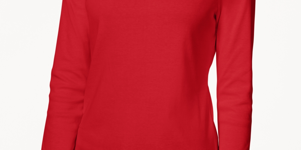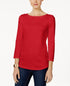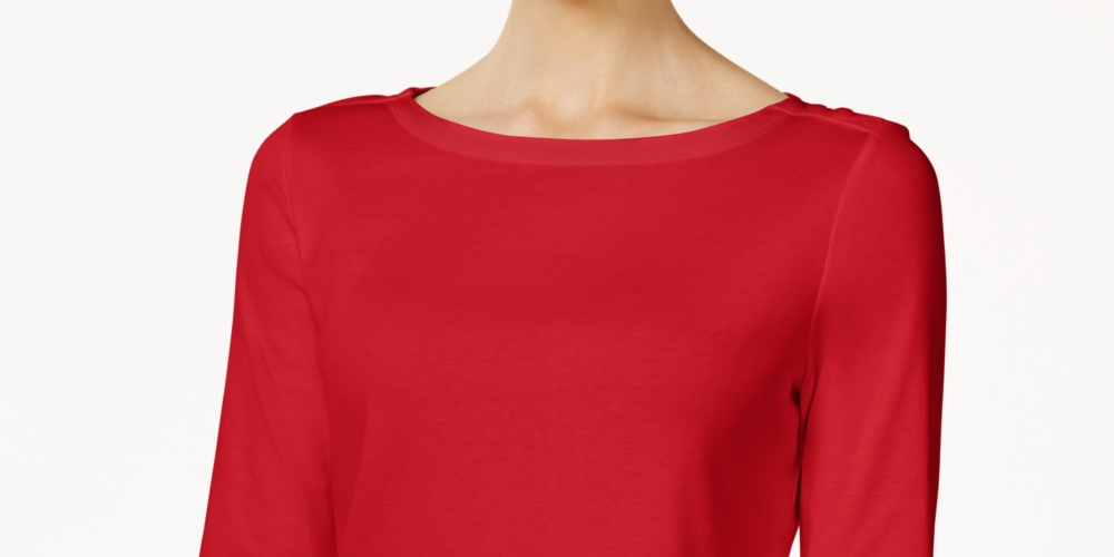 Charter Club Top feminino de algodão Pima com botões e ombros de fora, vermelho, tamanho pequeno GG