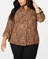 Camisa feminina plus size Charter Club com estampa animal, bege, tamanho 0X
