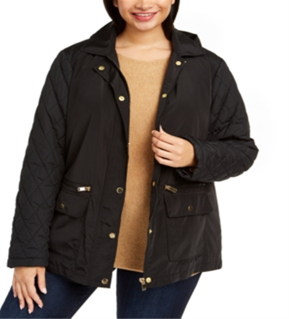 Jaqueta acolchoada com capuz feminina Charter Club Plus, preta, tamanho 2X