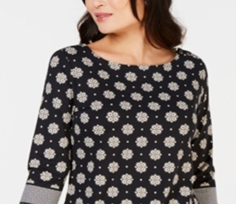 Tão clássico com decote canoa e mangas 3/4 | este top Charter Club é essencial com estilo atemporal. | Caimento relaxado; atinge o quadril; comprimento aproximado de 26 | Devido ao tamanho generoso | sugerimos um tamanho menor para um ajuste perfeito | Decote canoa