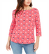 Top feminino com estampa de gola canoa Charter Club, vermelho, tamanho médio