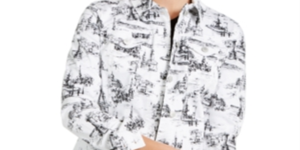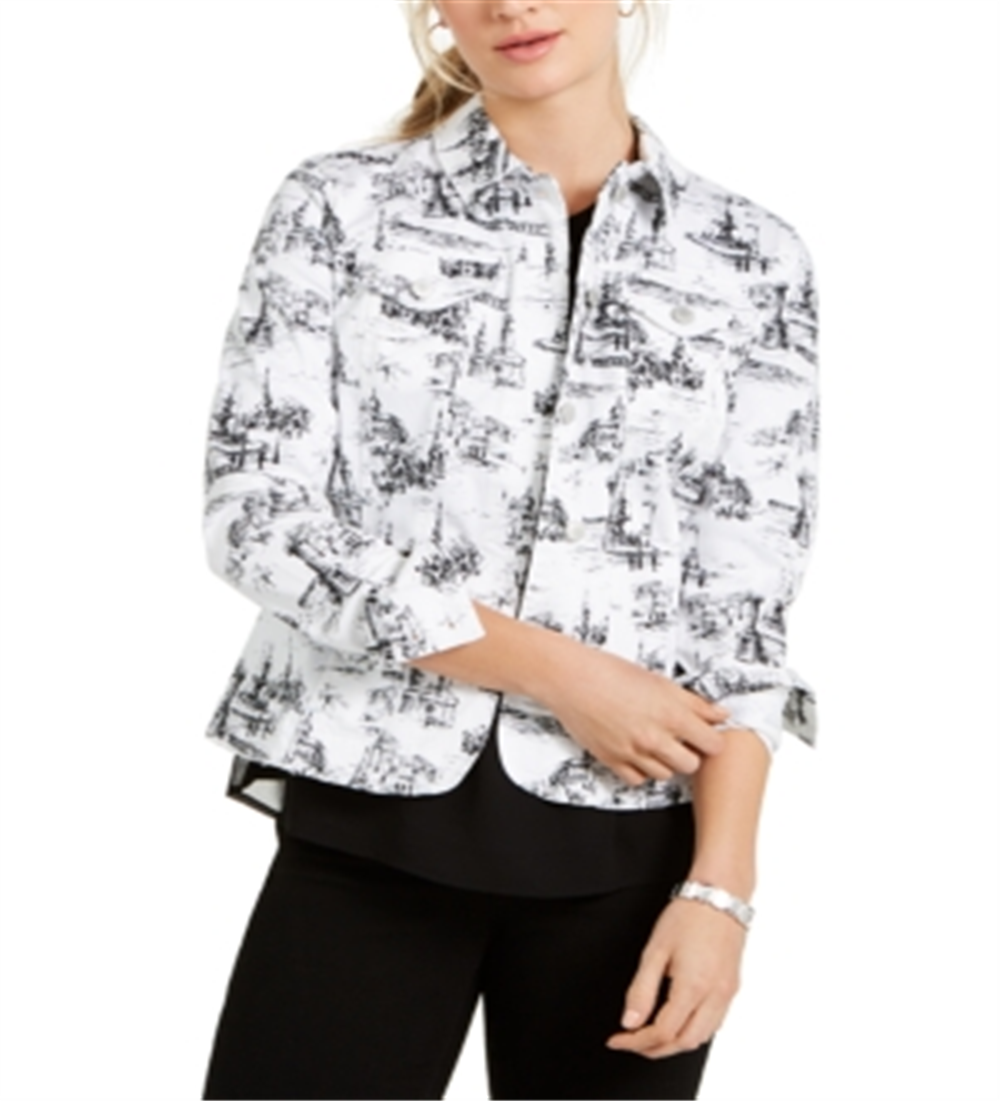 Jaqueta feminina estampada em jacquard Charter Club, tamanho pequeno, branca