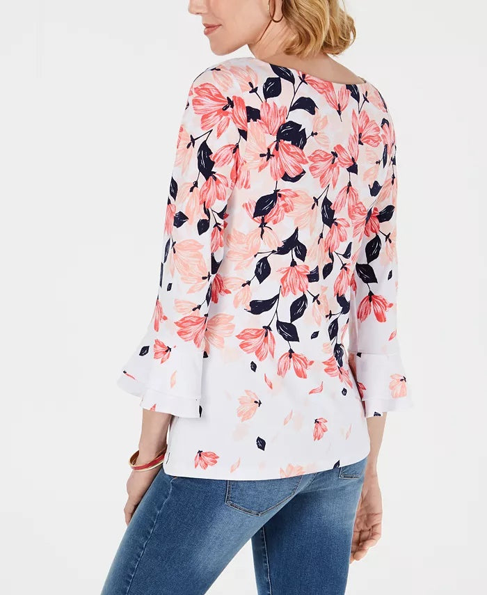 Blusa feminina estampada com mangas franzidas Charter Club, branca, tamanho médio