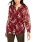 Top feminino com estampa e decote aberto Charter Club, tamanho pequeno, vinho