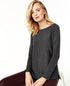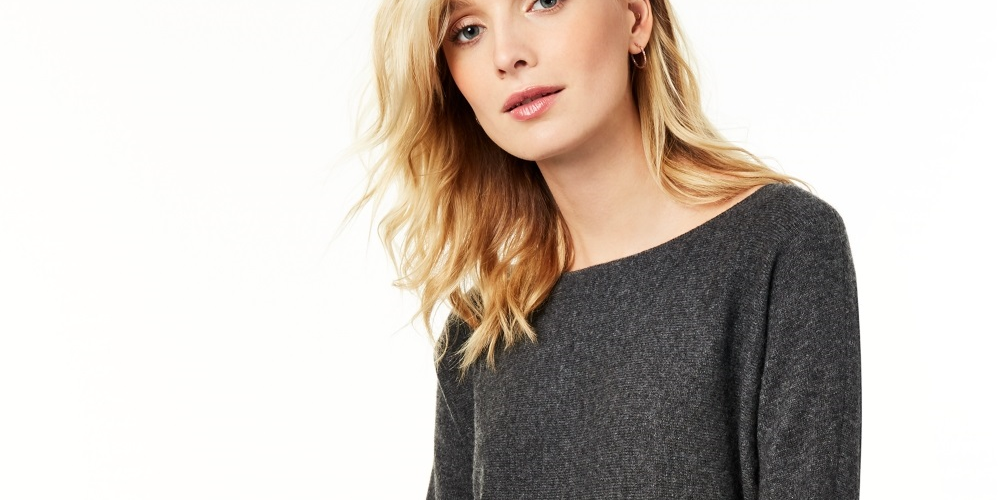 Suéter feminino Charter Club Pure Cashmere manga comprida cinza tamanho médio