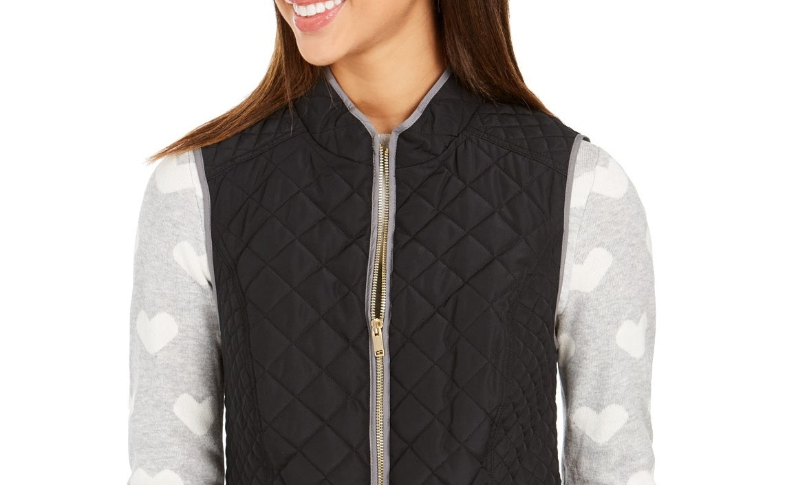 Colete feminino acolchoado com gola alta Charter Club, preto, tamanho médio