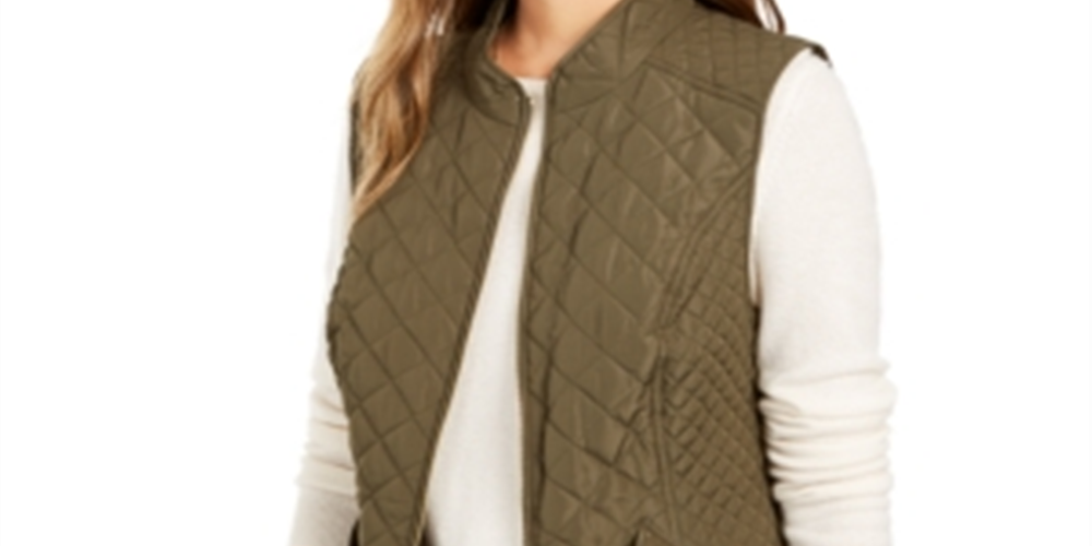 Colete feminino acolchoado com gola alta Charter Club, verde, tamanho médio