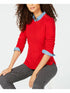 Suéter feminino com estampa canelada e gola redonda, manga comprida, tamanho PL, vermelho