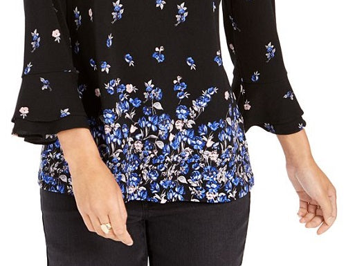 Ask a question about Top feminino com babados e punhos Charter Club, preto, tamanho pequeno G