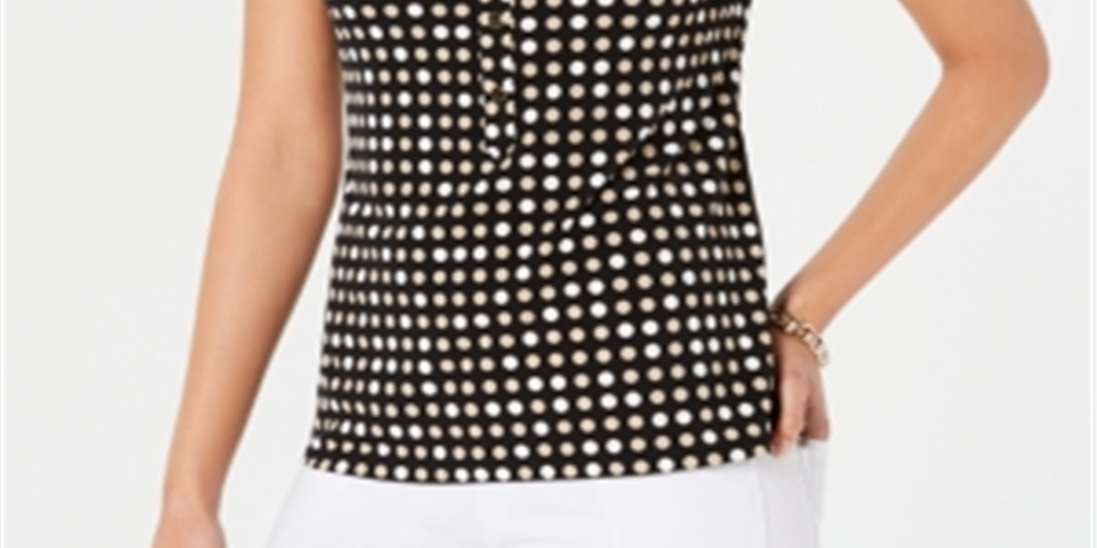 Camisa polo feminina estampada de manga curta Charter Club, preta, tamanho pequeno