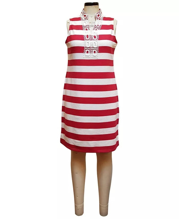 Vestido listrado pufe feminino Charter Club com decote dividido, vermelho, tamanho extragrande