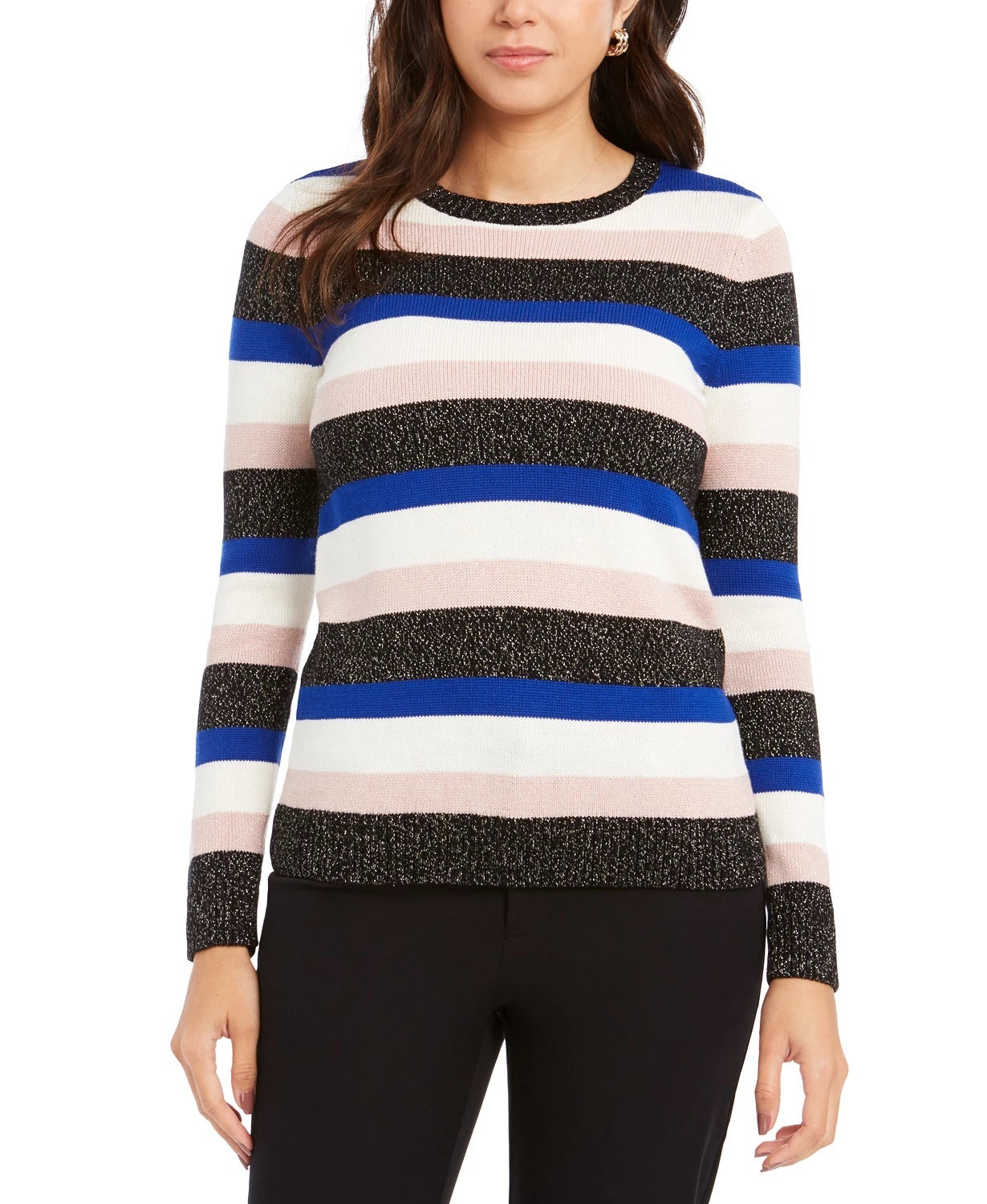 Suéter feminino listrado com gola redonda Charter Club, preto, tamanho médio