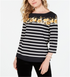 Blusa feminina listrada com estampa floral Charter Club, preta e amarela, tamanho pequeno G