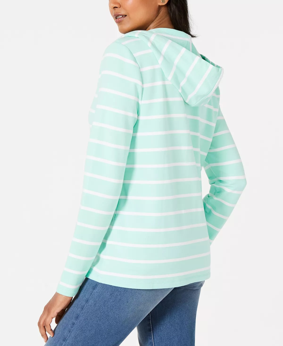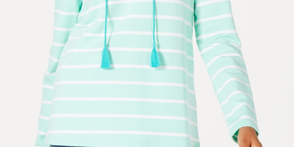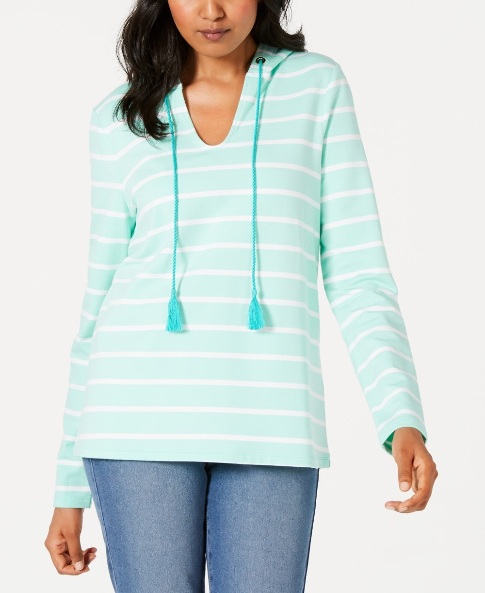 Moletom com capuz listrado e borlas feminino Charter Club, azul, tamanho extragrande