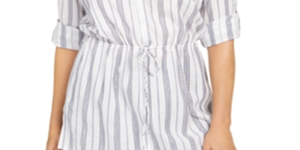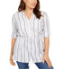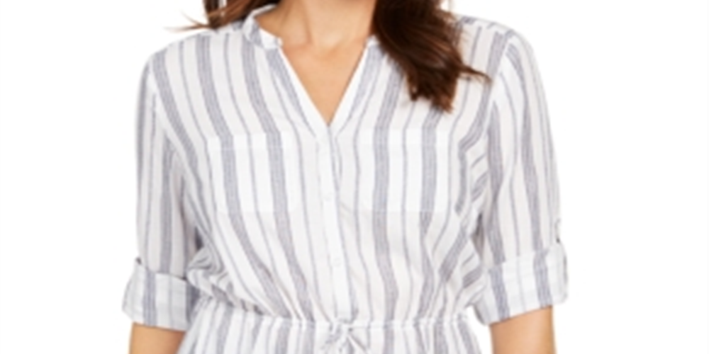 Charter Club Blusa feminina listrada de algodão com amarração na cintura, tamanho pequeno, branca